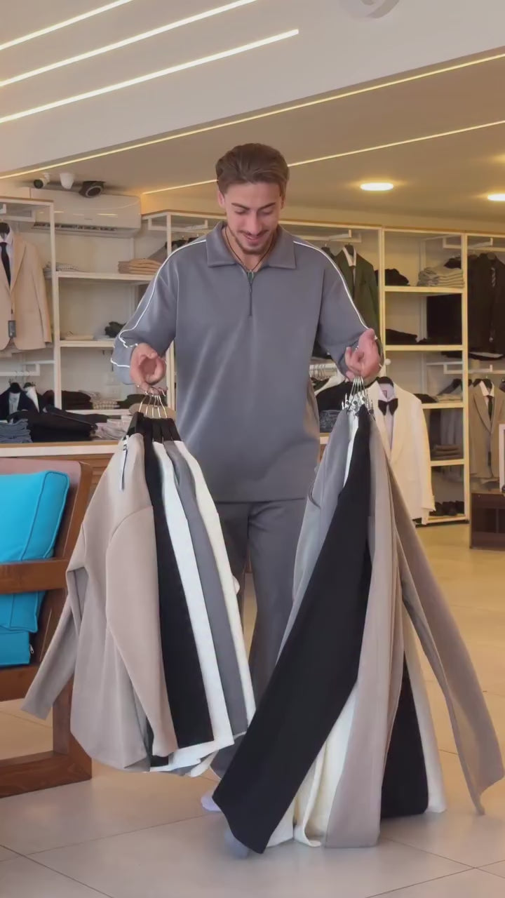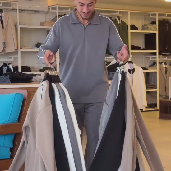 Stay warm and stylish this winter . This comfortable and sleek tracksuit offers a v-neck design and is perfect for any outdoor activities. Embrace the cold while looking your best with this must-have addition to your winter wardrobe.