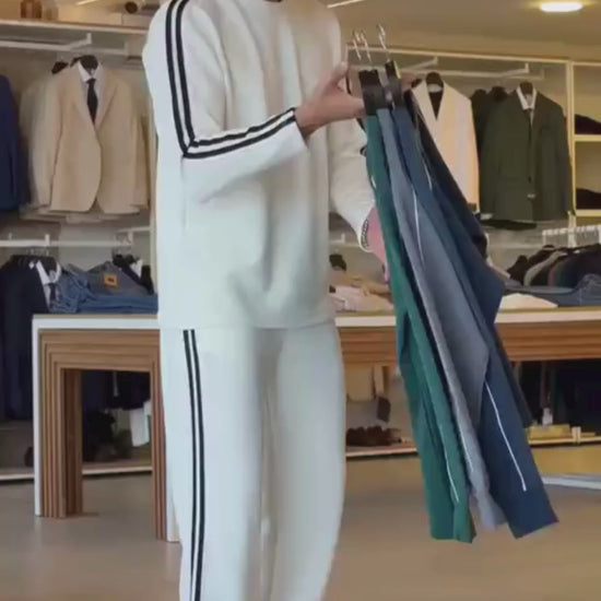 Stay warm and stylish this winter . This comfortable and sleek tracksuit offers a v-neck design and is perfect for any outdoor activities. Embrace the cold while looking your best with this must-have addition to your winter wardrobe.