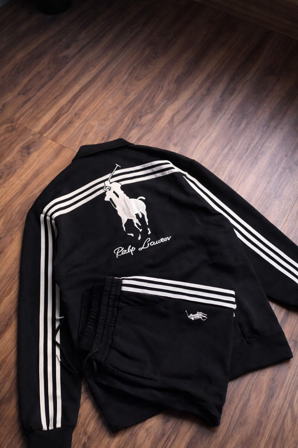 Step up your everyday style with this men’s premium zip-neck tracksuit, designed for a perfect balance of comfort and modern fashion. This two-piece set features a half-zip collared sweatshirt paired with matching track pants, detailed with a minimal embroidered logo and stylish side stripe accents.